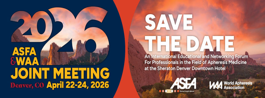In this spirit, I am pleased to announce that the 19th International Congress of the World Apheresis Association is going to be held in 2026 as a joint meeting of the WAA and ASFA. Details forthcoming on what is sure to be an important event in our field.